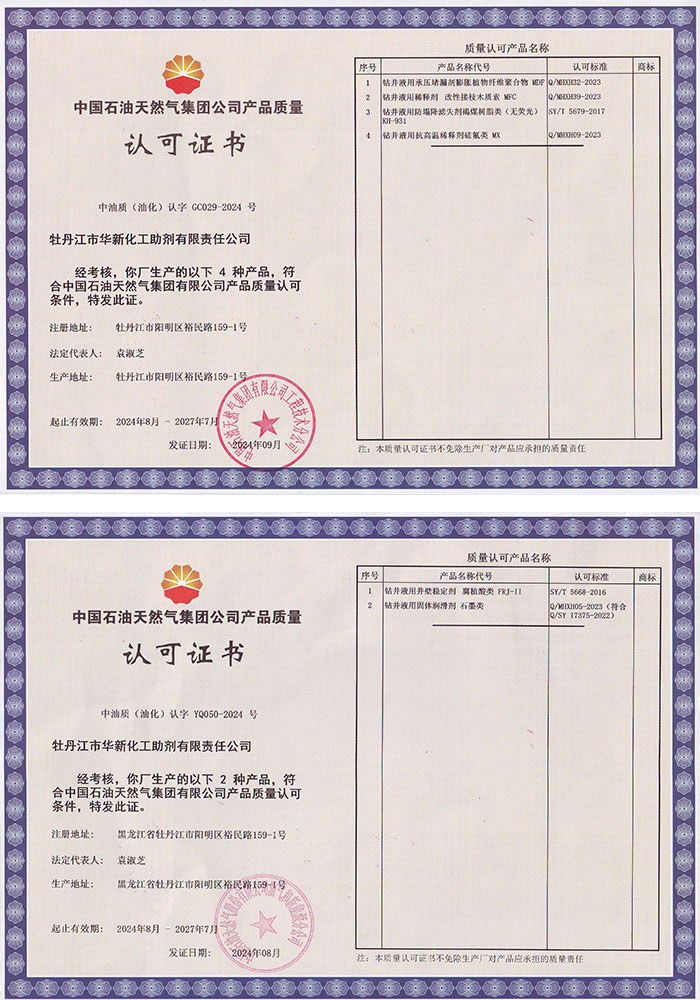 > 中石油质量认可证书